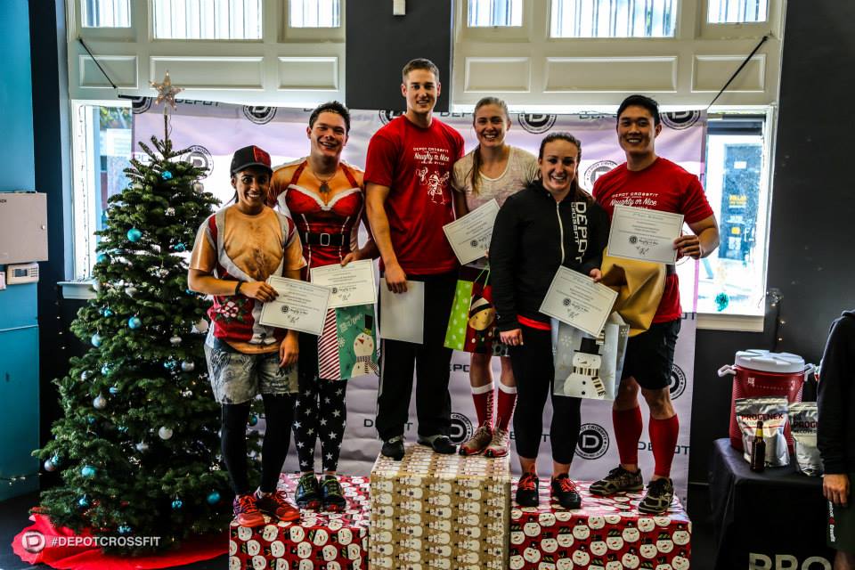 I competed in my first CrossFit competition in two years on Saturday—it was very small, Christmas-themed, and it only consisted of Depot members. My partner, Brad, and I got first place! It was a good experience overall, especially compared to the last competition I tried, in which I unwisely volunteered to do way too many thrusters and pull-ups. Jonji was an excellent MC, made even better by the fact that he was forced to wear a Christmas onesie.