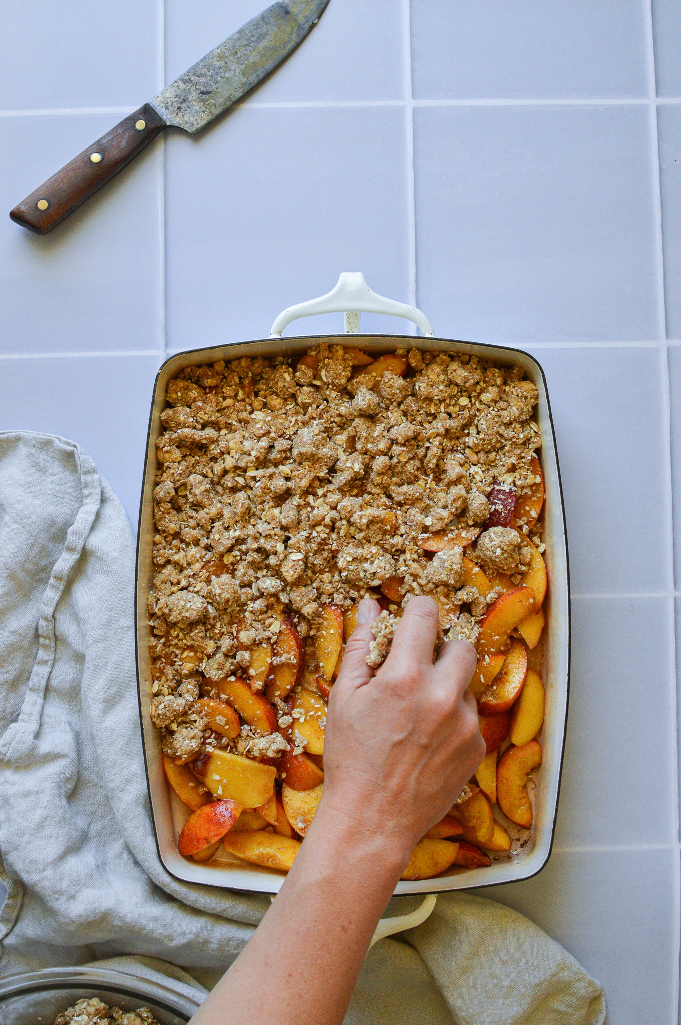 Note: this crumble can be made with whatever fruit is in season—berries, apples, plums, a combination of fruits, you name it! Just adjust the sugar as needed, depending on the sweetness of the fruit.