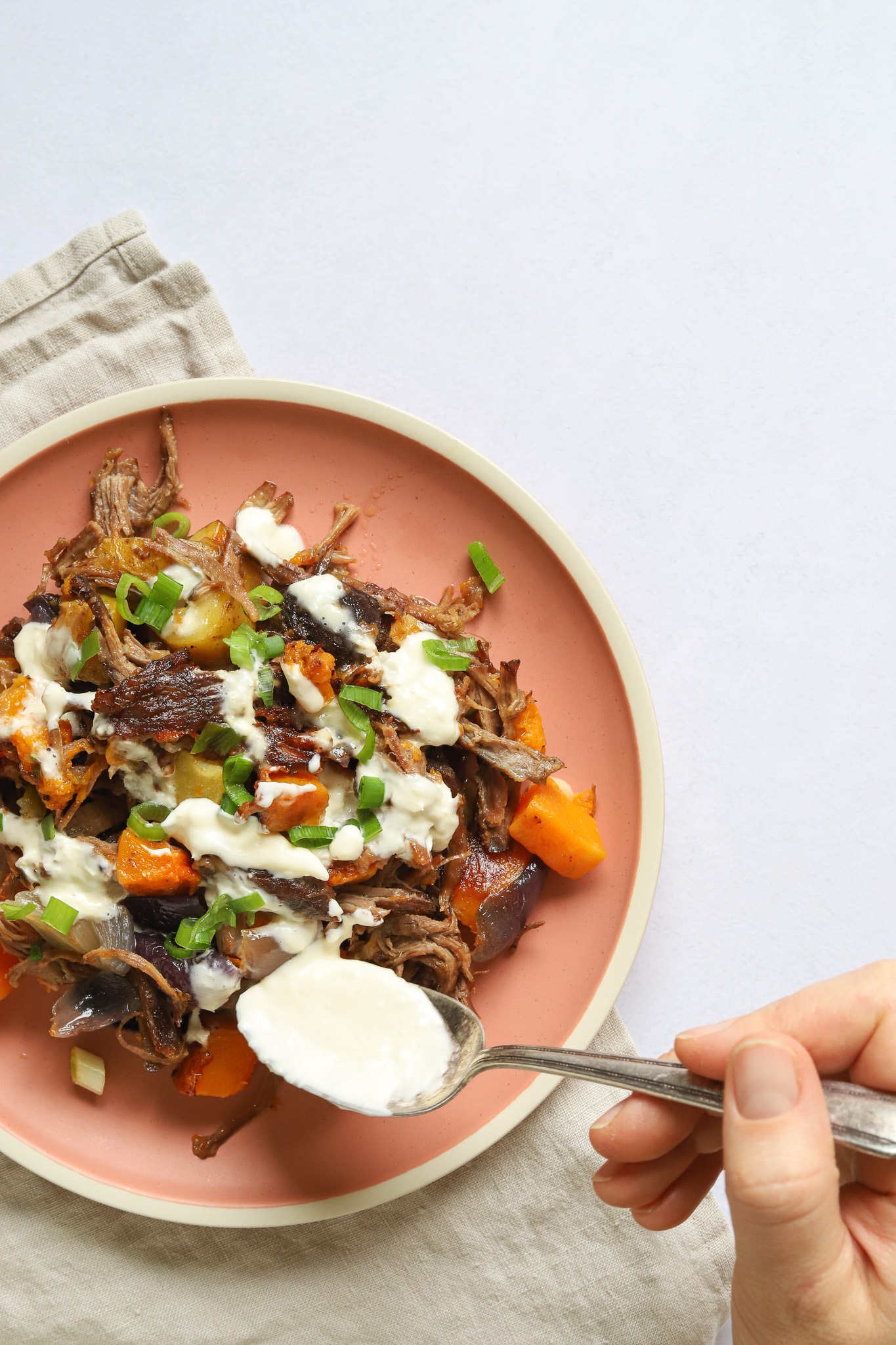 This recipe was inspired by Sqirl’s vegetable hash, which involves beets. I prefer my dinners a little less sweet, so I opted for butternut squash and therefore a milder sweetness. Making the corned beef the day before requires some foresight, but it’s worth it. Once that’s done the rest of the dish is quite easy! Also, if the crème fraîche is putting you off, I highly encourage you to take the extra step and make your own; it takes approximately 5 minutes or less. Bonus recipe below!