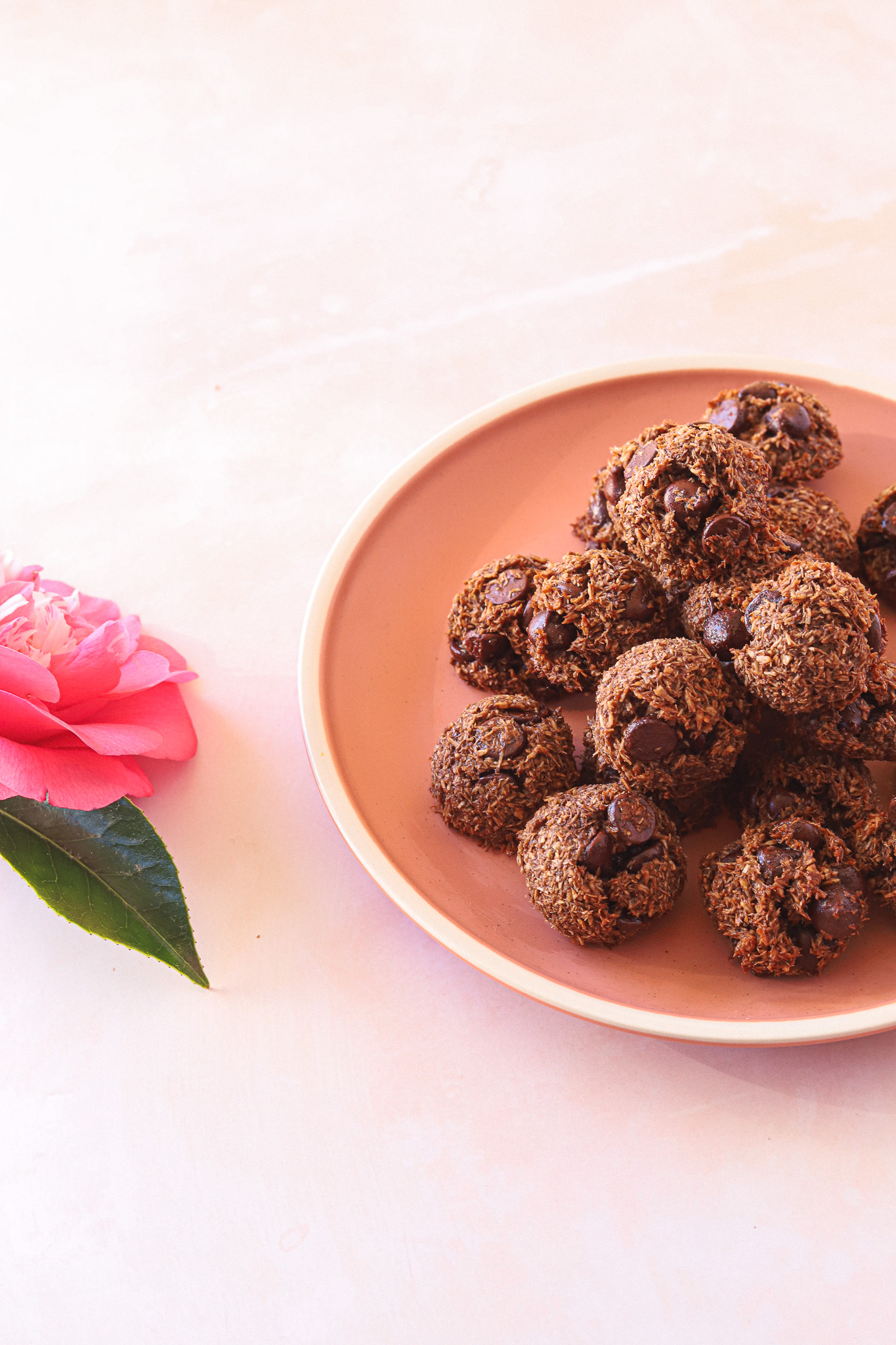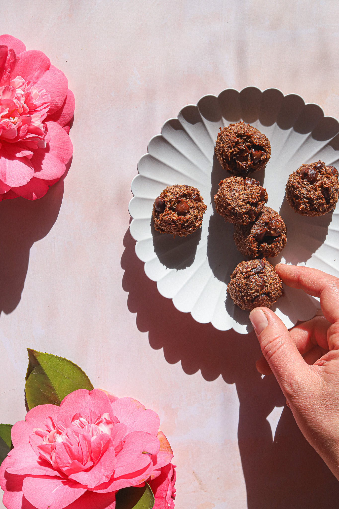 This recipe was given to me by Liz Burns, a coach at Depot and an overall wonderful human being. One day we were talking about cookies and chocolate, naturally, and she told me about her “super easy” cookies. They’re basically chocolate macaroons; naturally gluten-free, they’re also not very sweet (which I love) because there’s no added sugar, and, bonus, they’re super tasty. It’s a great treat to have during a long day. As I’ve had to be more organized with food now that I have a full-time job, these are going into my Sunday-prep category so that I can take them to work with me. Liz said that sometimes she makes the batter in the morning and chills them in the fridge all day so that she can come home and bake fresh cookies in the evening; a superb idea, on the whole.
