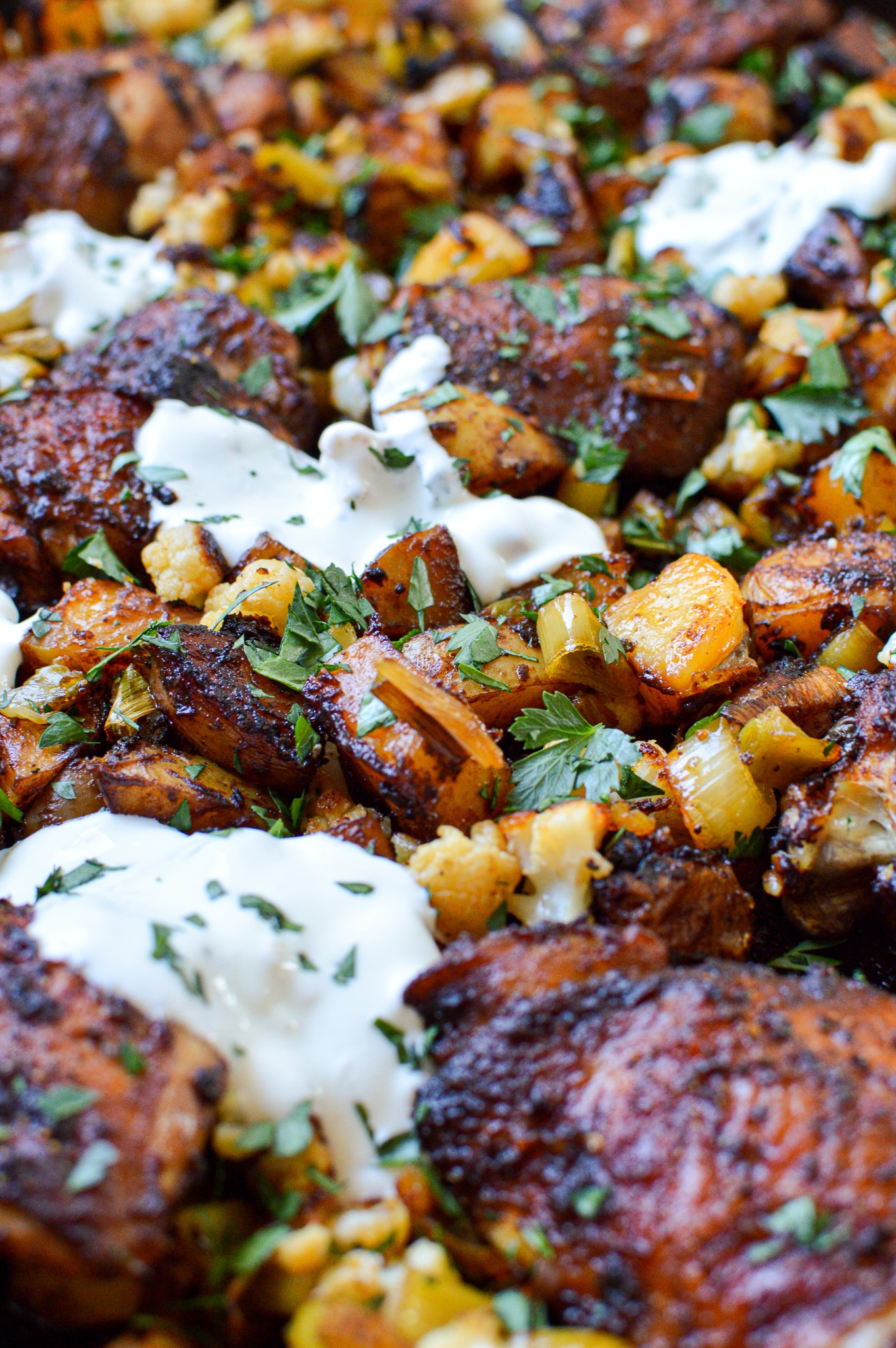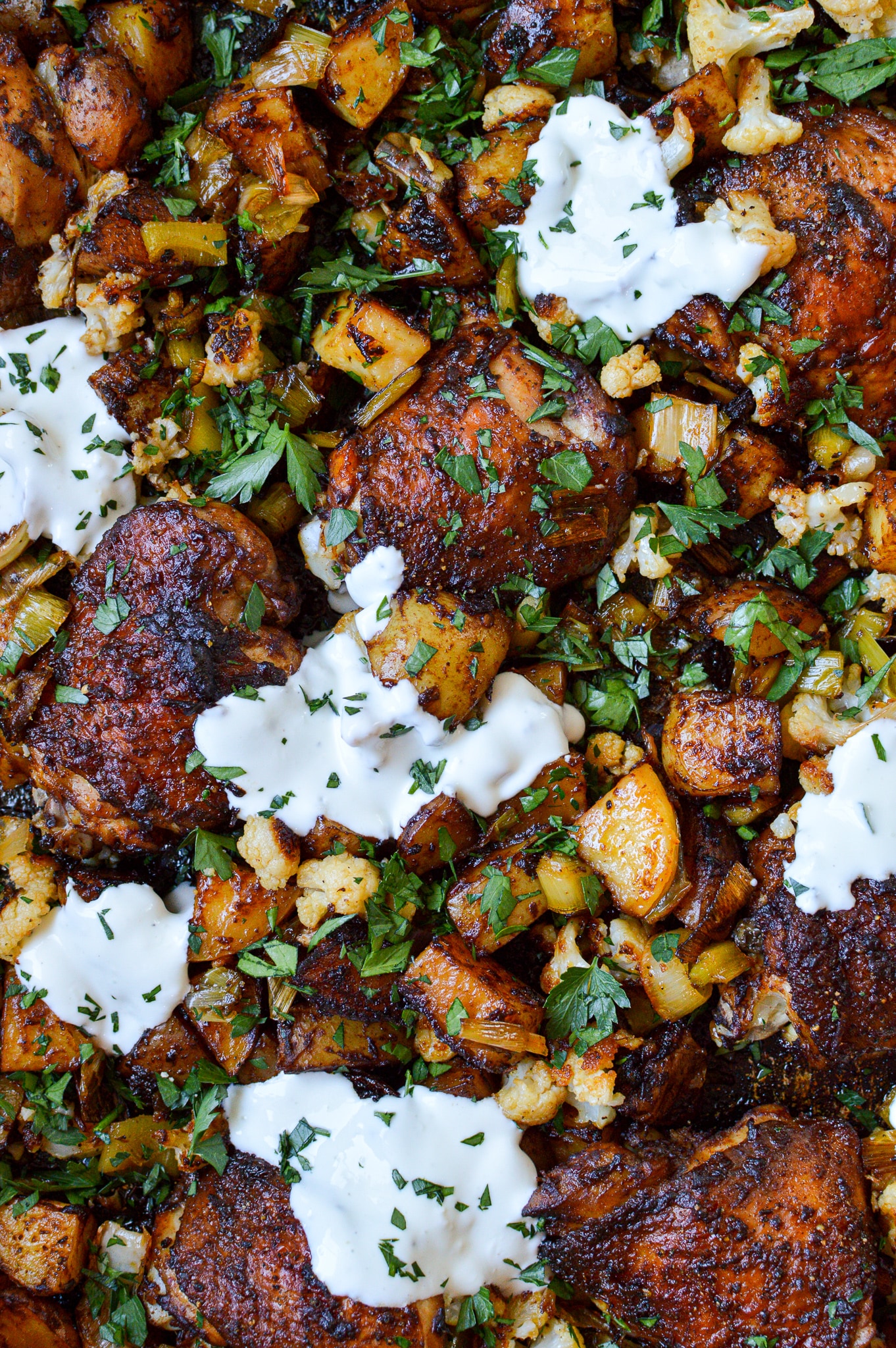 Harissa Chicken with Leeks, Potatoes, and Cauliflower