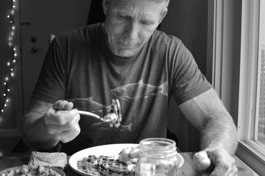 One such occasion was when my parents, Emma, Bailey, and Poppy came over for brunch, before things got extra serious. We had to feed Poppy something at the table with us because she was getting jealous of our meal, and I don’t blame her! Bailey said these taste like banana bread in waffle form, and I don’t think she’s wrong. That being said, the banana flavor isn’t super strong, so don’t be put off if you don’t love banana bread.