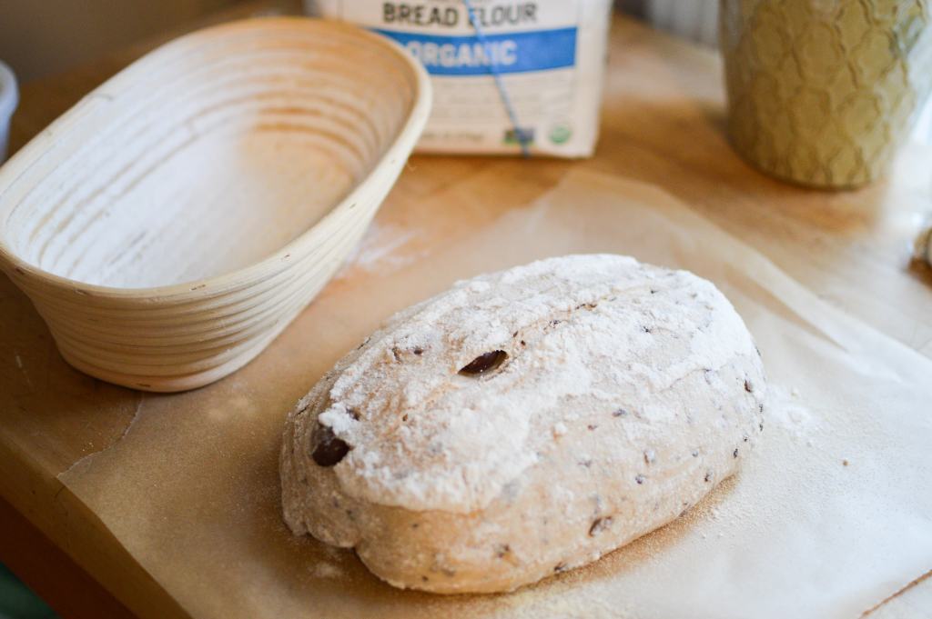 Pat down the dough and shape once more, using the same method. Generously flour a banneton (bread basket) or a standard loaf tin lined with a kitchen towel. Place your reshaped dough into the banneton or loaf pan, seam-side up. Cover loosely with a damp towel and let rise in a warm spot for another 2-3 hours.*