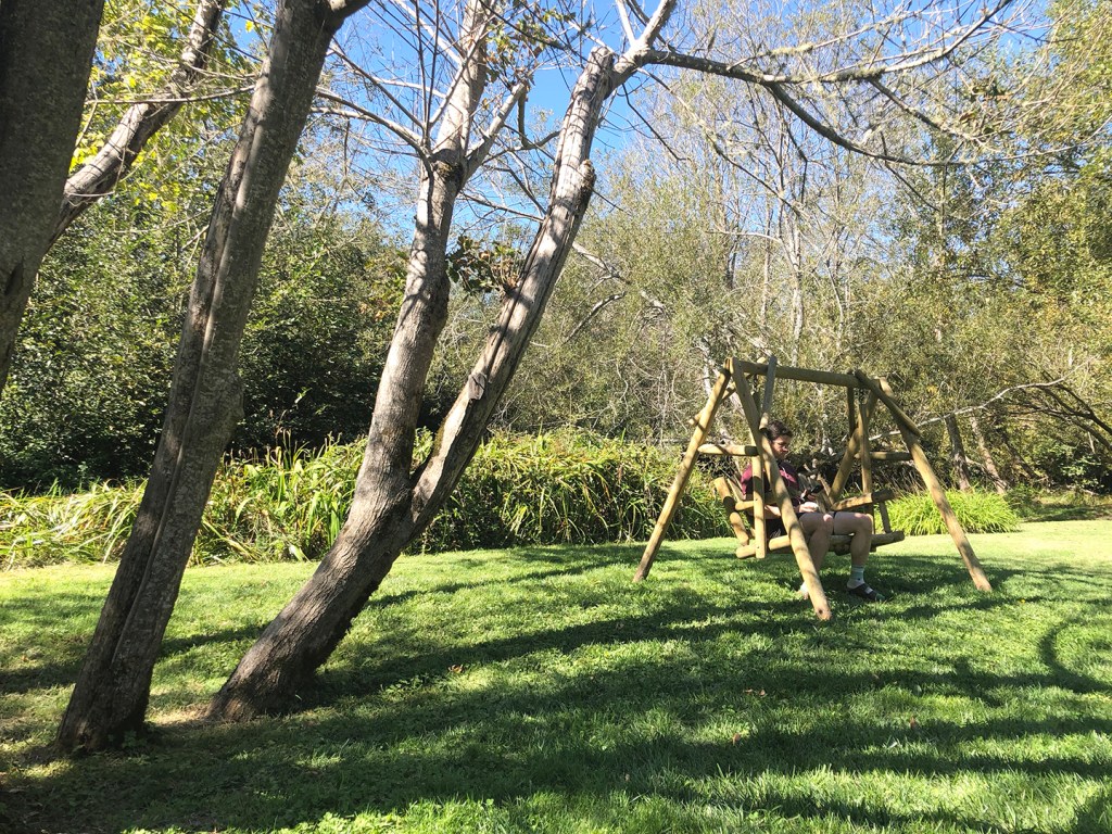 We next stayed two nights in Point Reyes, at a lovely little hotel with a sweeping lawn in that back that boasted several lounge chairs perfect for reading in and soaking up the birdsong. Jonji spotted a couple of large crawdads in the creek, and we even saw a large male deer walk almost silently past us, 10 feet away, on his way to pick up apples that had fallen off the property’s tree.
