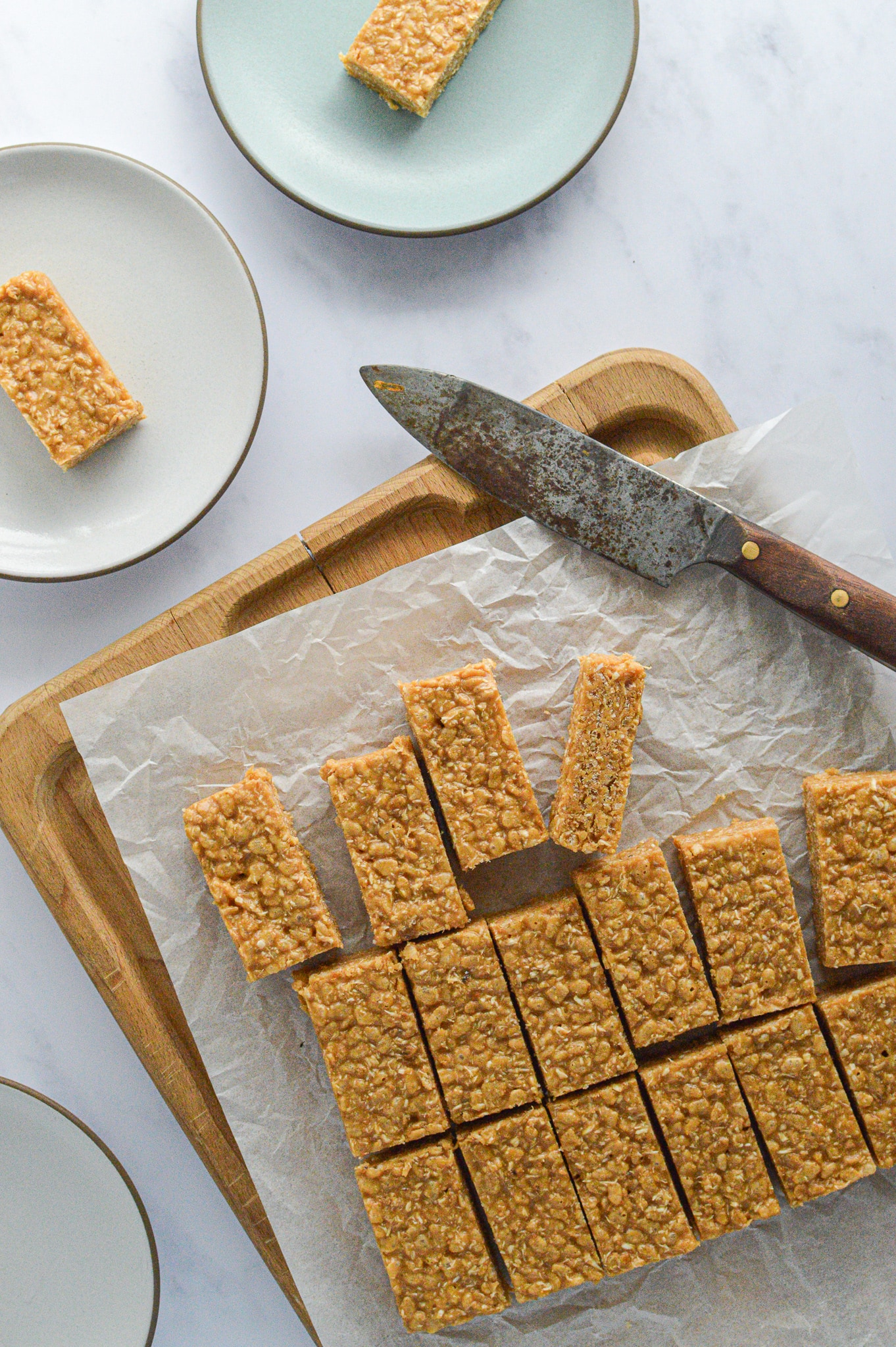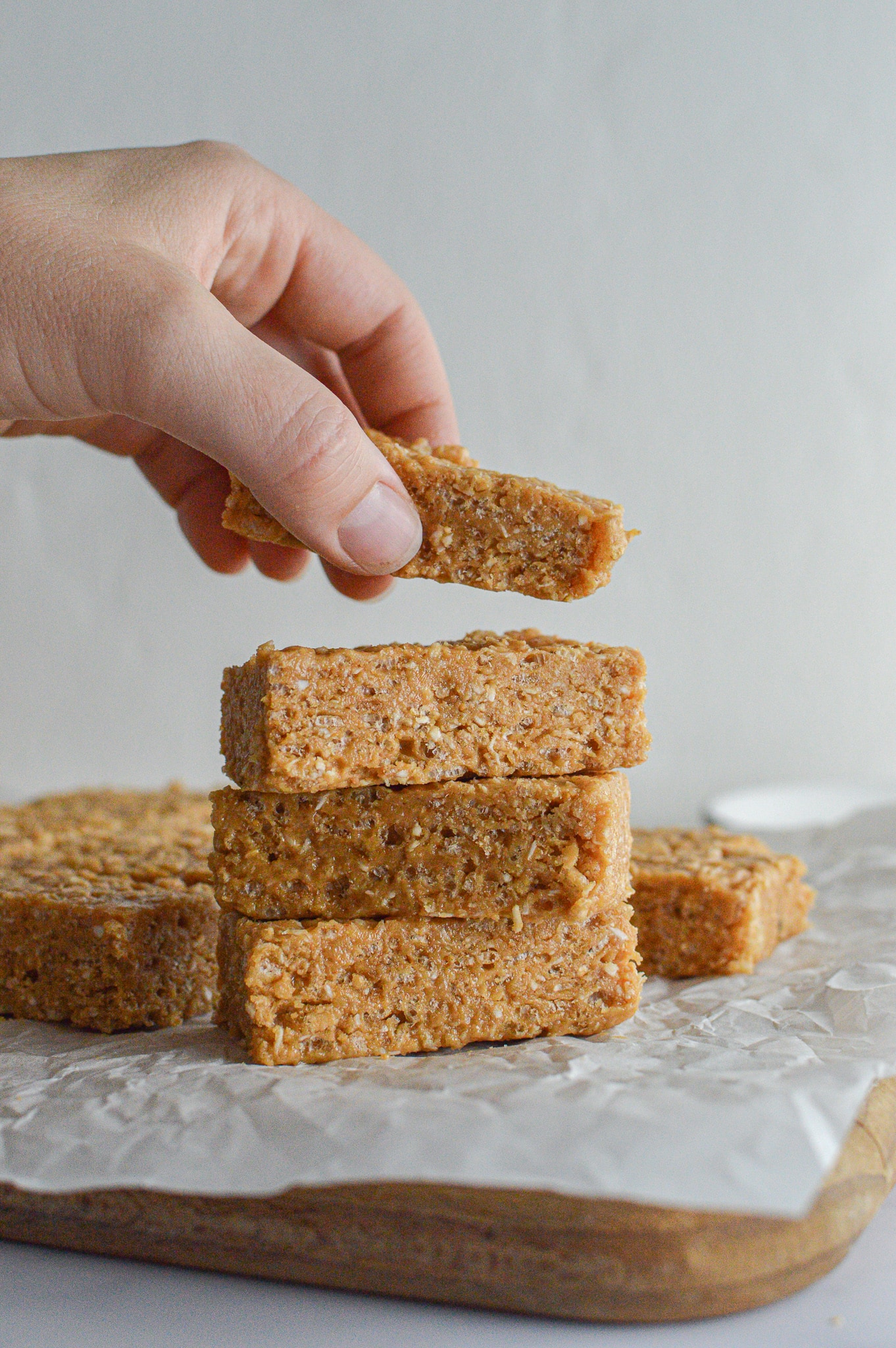 We experienced loss this Fall, but we also experienced the joy of new life. Bailey gave birth to Rory early on October 7th, a whopping 10 lbs 7 oz baby and an appetite to match. I brought her a couple meals to support her recovery, and I made these bars as a dessert. They’re quite healthy as far as desserts go, but I would choose them over cookies at least half the time. They’re salty, sweet, a little crunchy, and absolutely addicting. I ate a ton of them when I was recovering from Phoebe’s birth. Make some for someone in need of nourishment or a little extra love, or make them just to bring a little extra joy to your life.