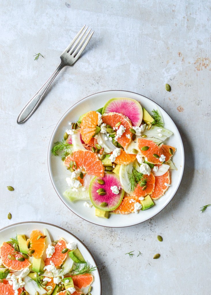One response to “Mom’s Citrus Salad with Avocado, Fennel, & Pumpkin Seeds”