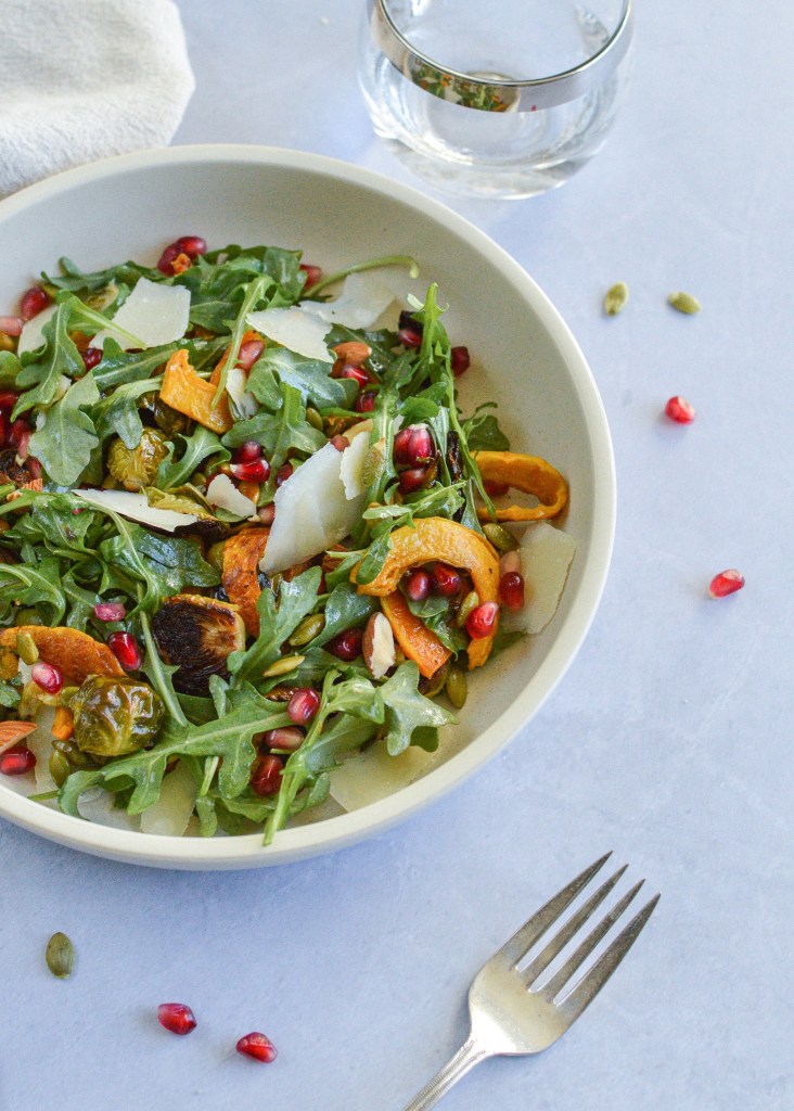 Brussels Sprouts Salad with Delicata Squash & Pomegranate