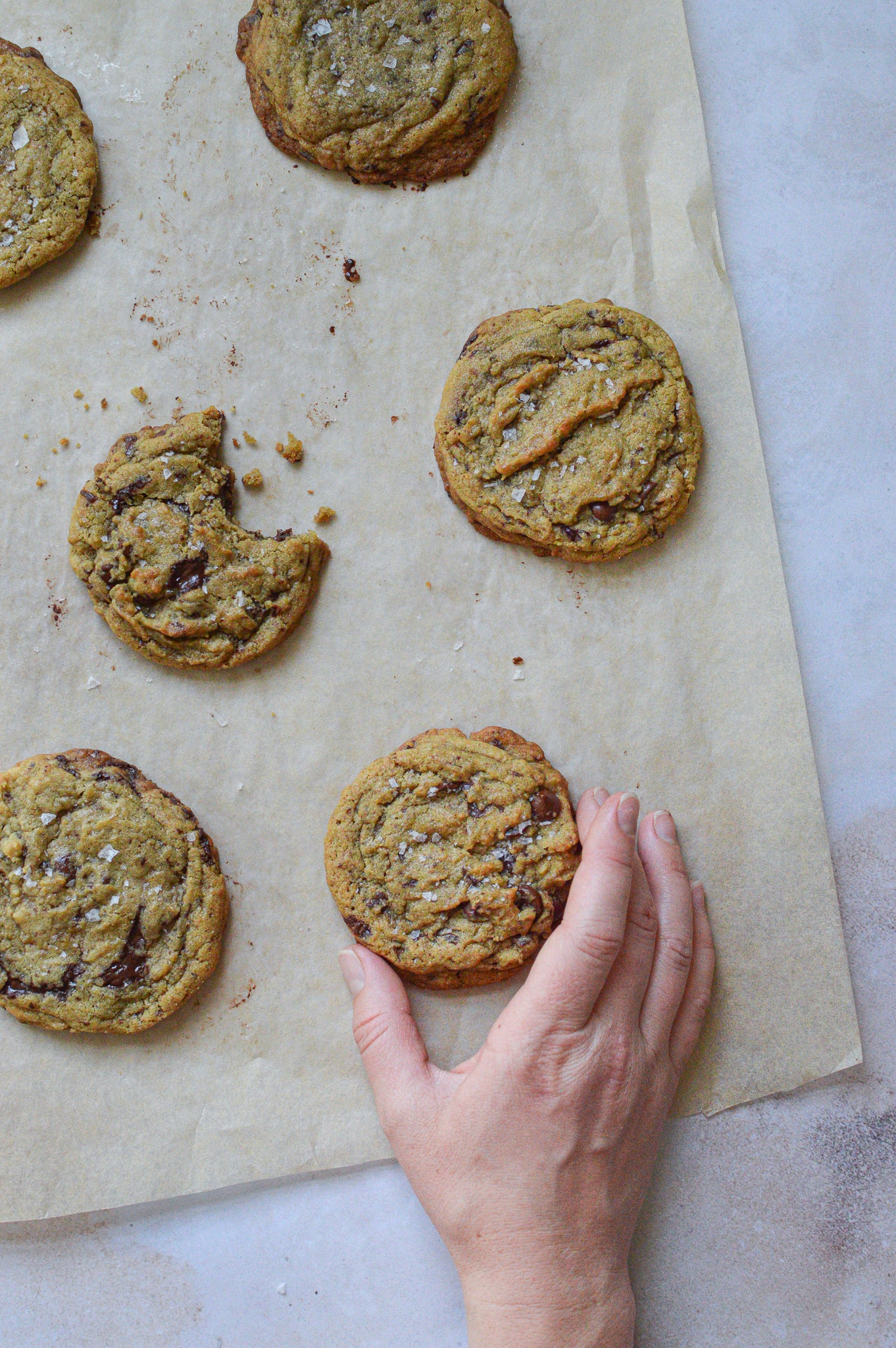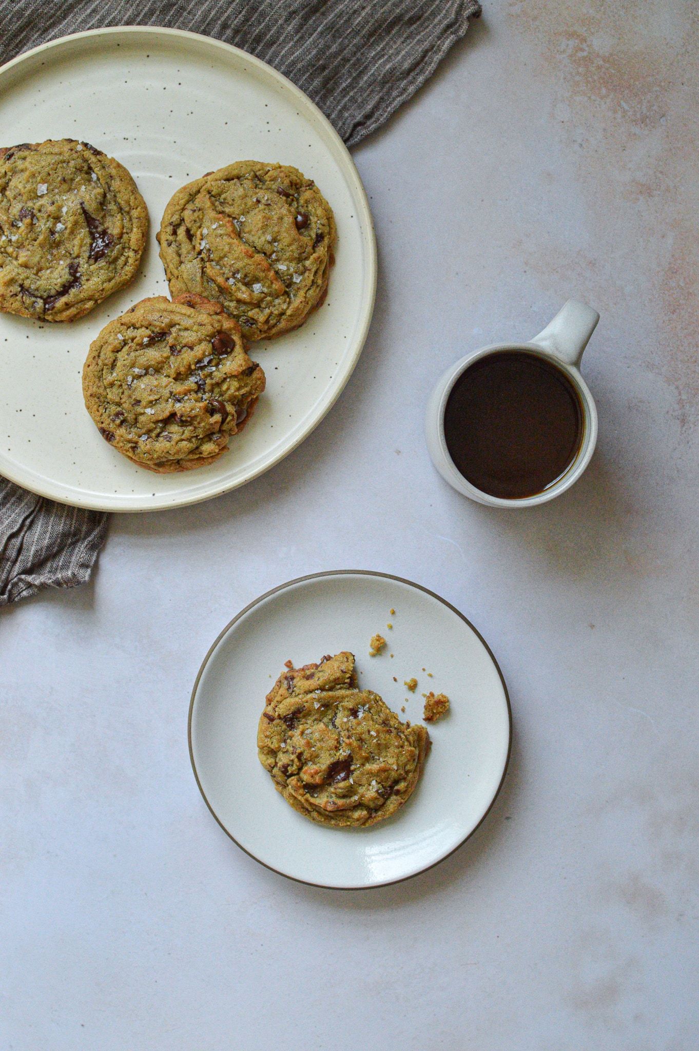 Chocolate chip cookies are very much the darling of the cookie world. They’re classic for a reason: they’ve consistently hit the spot for sweet teeth all around the world for generations. It’s impressive just how many variations on this one kind of cookie there are! Cakey, chewy, crispy, tons of chocolate, less chocolate, milk chocolate or dark chocolate, flaky salt or no flaky salt—the list goes on. I’ve tried what feels like thousands of different recipes over the years, first starting with my mom’s old recipe, printed and stored in a binder with no reference to indicate where it came from. Since then I’ve tried recipes from countless cookbooks, recipes on the backs of chocolate chip packaging, and online recipes, but I could never seem to find my ideal chocolate chip cookie.