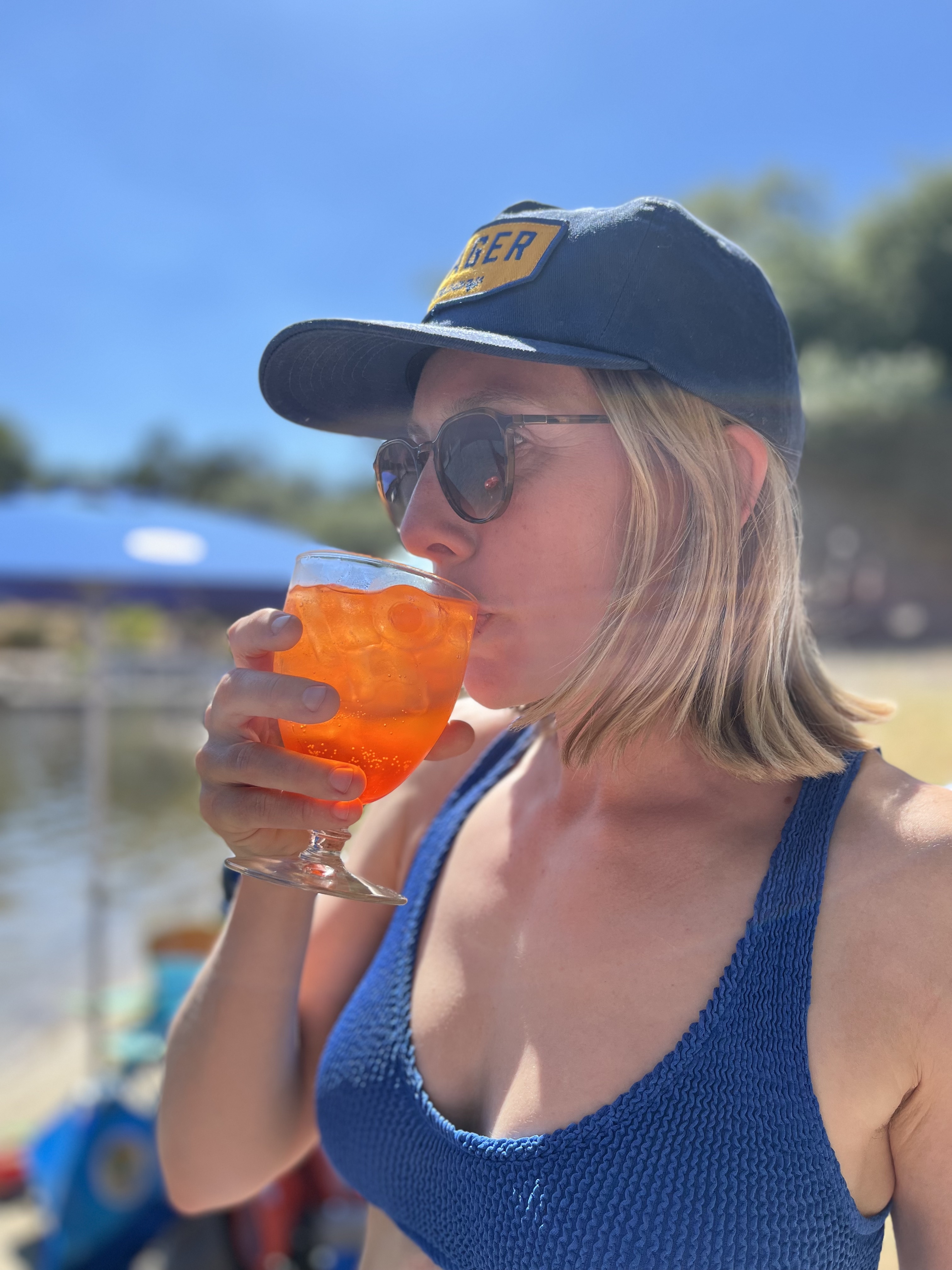 The Aperol Spritz is a social drink at heart, and tastes especially good on vacation, at an outdoor summer meal, or really anywhere outside you can bring them. At a family lake vacation recently, my sister Bailey stuffed bottles of champagne, Aperol, sparkling water, glasses, an orange, and a bowl of ice into a wagon with her two children and walked the quarter mile down to the beach to meet our extended family. She squatted amongst the plant life at the water’s edge, measuring ice and liquid into an assortment of glasses, and cut the orange into segments on top of a rock. They may have not been the most refined spritzes I’ve ever seen, but they still tasted incredible (I allowed myself a sip and promptly felt quite sad I couldn’t have one all to myself).