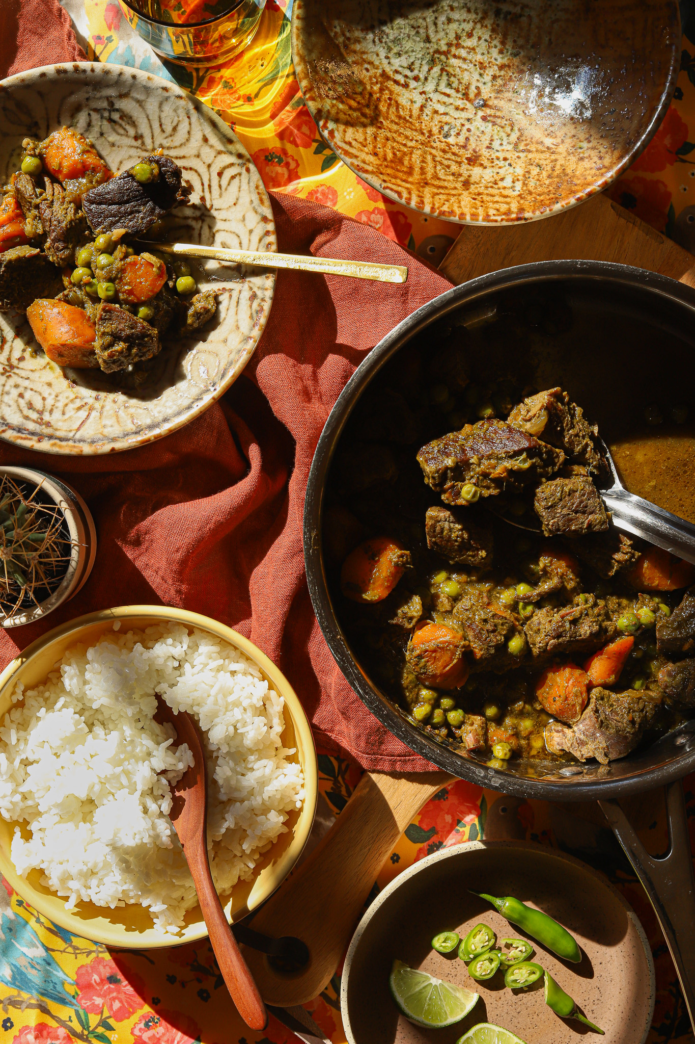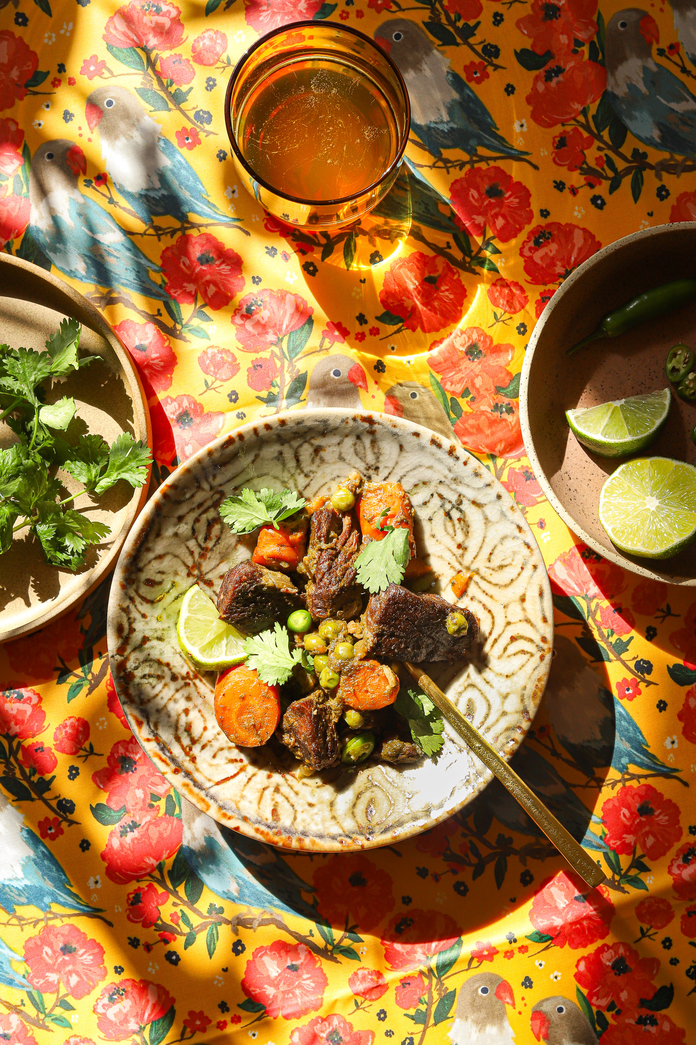 After giving birth to Wren, my sister Emma and her fiancé, Danny, brought us one of Danny’s favorite family meals, which he simply called seco. They stopped by in January with a pot full of fragrant meat and vegetables along with a container of rice, and sat down around the table to eat it with us. Succulent morsels of falling-apart beef mingled with large chunks of carrot and the occasional pop of green peas, all laid out over a warm bed of white rice. I absolutely loved it. Danny wrote out a recipe draft and I’ve made it a few times since then. It’s a very simple, hearty Peruvian dish that was passed down to Danny from his mom’s mom, his abuelita, who had it passed down to her from her mother. It’s traditional, delicious, and steeped in family history.